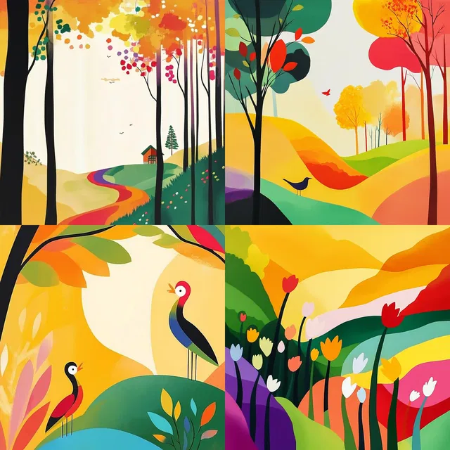 Этот стиль отлично подходит для создания радостных и энергичных композиций, что делает его идеальным для детских книг, брендинга и образовательных материалов. Однако отсутствие фотореализма может ограничить его применение в более традиционных или реалистичных контекстах.