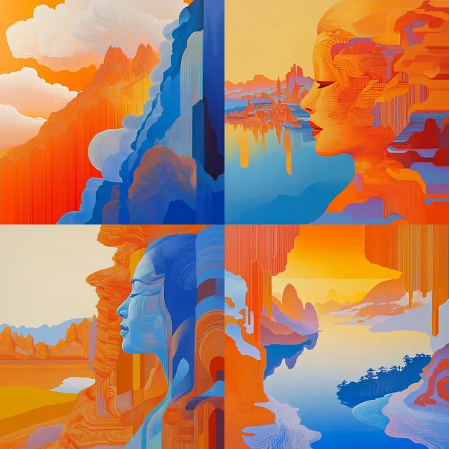 Применение ярких градиентов и контрастных оттенков усиливает визуальный эффект, погружая зрителя в футуристический и провидческий мир. Хотя этот стиль превосходно подходит для создания неземных и фантазийных пейзажей, ему может не хватать реализма, необходимого для более традиционных или репрезентативных форм искусства.