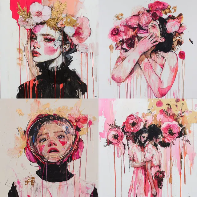 Этот стиль ярко воплощает мечтательную и неземную эстетику. Он очаровывает выразительными лицами и органическими формами. Струящиеся текстуры и текучие формы создают сюрреалистичную, потустороннюю атмосферу, которую подчёркивает палитра розовых оттенков и золотые акценты.