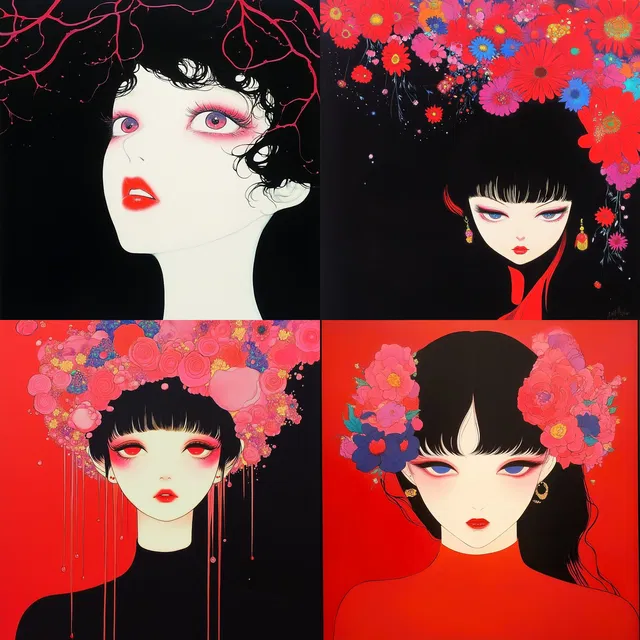 Этот стиль ярко стилизует изображения с акцентом на насыщенных цветовых палитрах и смелых композициях. В нём сочетаются влияние аниме и манги с эстетикой киберпанка. Использование неонового освещения и динамичных форм создаёт сюрреалистичную, сказочную атмосферу, одновременно причудливую и напряжённую.