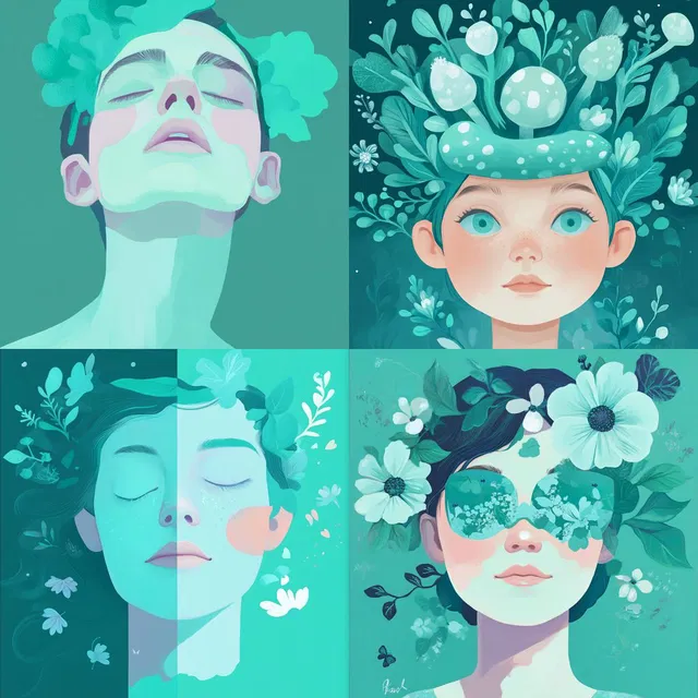 Аква Dreamscape очаровывает последовательным использованием монохроматических тонов цвета аква, создавая безмятежное и целостное визуальное повествование на разнообразные темы. Иллюстративный стиль отличается чёткими линиями и мягкими градиентами, придающими каждому изображению изысканный и современный вид.