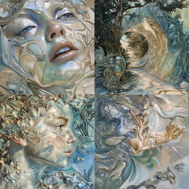 В этом стиле главенствует плавная эстетика: закрученные органические формы и переливающиеся цвета создают сказочную, эфемерную атмосферу. Стиль отлично подходит для передачи сюрреалистичных образов, сочетая в себе влияние ар-нуво и современного сюрреализма. Органическая абстракция и динамика плавных форм присутствуют постоянно, придавая каждому произведению мистическую ауру.