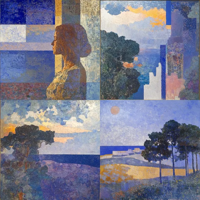 Этот стиль отличает поразительное взаимодействие фактурных мазков и многослойных нанесений. Они создают сложную и богатую текстуру, напоминающую импрессионизм и модерн. Преобладающая синяя палитра с лазурными и кобальтовыми оттенками создаёт сказочную атмосферу в самых разных сюжетах — от природных пейзажей до футуристических городских пейзажей.
