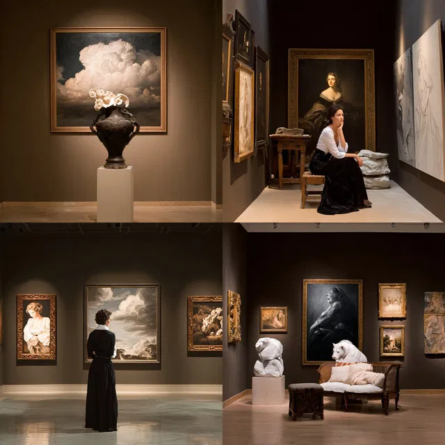 Этот стиль отличается насыщенными текстурами и выразительными контрастами, которые вызывают ощущение исторического величия и художественного наследия. Использование светотени и смелых композиций создаёт эмоциональную глубину, а замысловатые детали и насыщенные текстуры придают тактильность.