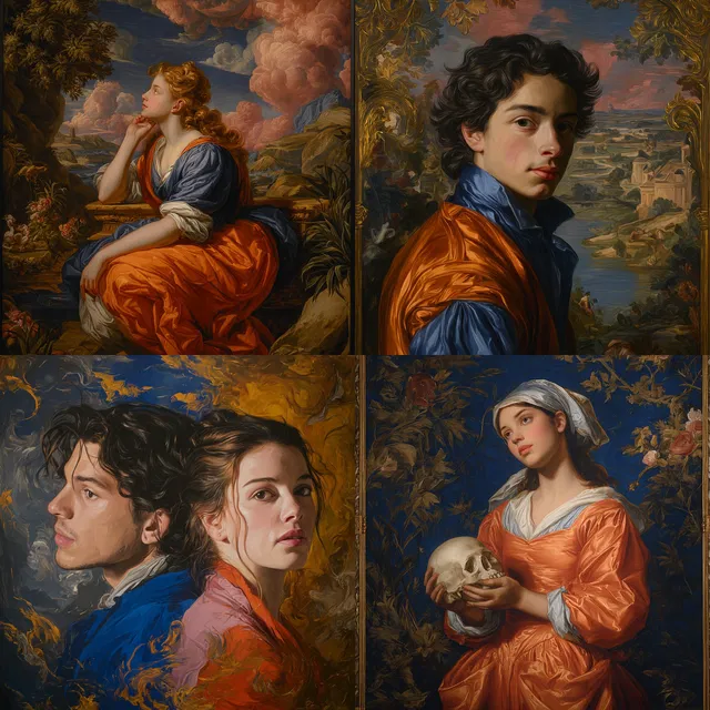 Визуальный стиль, вдохновлённый барокко, завораживает своей роскошной текстурой, драматическим освещением и выразительными лицами. Насыщенные цветовые палитры и сложные детали вызывают ощущение исторического величия, напоминая о европейской аристократии.
