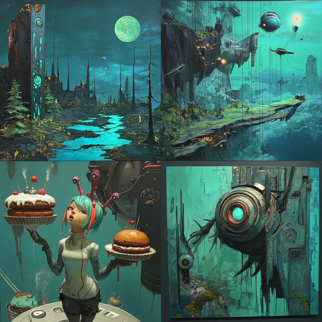 Замысловатые детали и сложные слои этого стиля особенно эффективны в концепт-арте и научной фантастике, что делает его идеальным для геймдизайна и футуристического брендинга. Однако его сосредоточенность на сюрреализме может ограничить применение в более традиционных или фотореалистичных контекстах, где ему может не хватать необходимого реализма. Несмотря на это, способность передавать потусторонние и технологические сюжеты остаётся его выдающейся чертой.