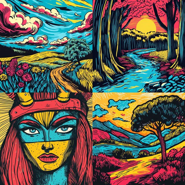 Композиции одновременно динамичны и увлекательны, с сильным ощущением движения и глубины. Хотя этот стиль отличается созданием визуально ярких и красочных изображений, ему может не хватать утончённости и реализма, что делает его менее подходящим для проектов, требующих более тонкого подхода.
