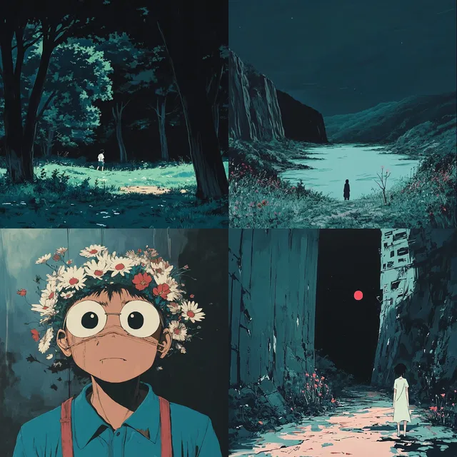 Использование приглушённых тонов и чётких контуров создаёт выразительный визуальный язык, в котором сочетаются элементы аниме и живописные приёмы. Этот стиль отличается способностью передавать эмоциональную глубину и насыщенность повествования. Часто применяются динамичные композиции и выразительные персонажи.