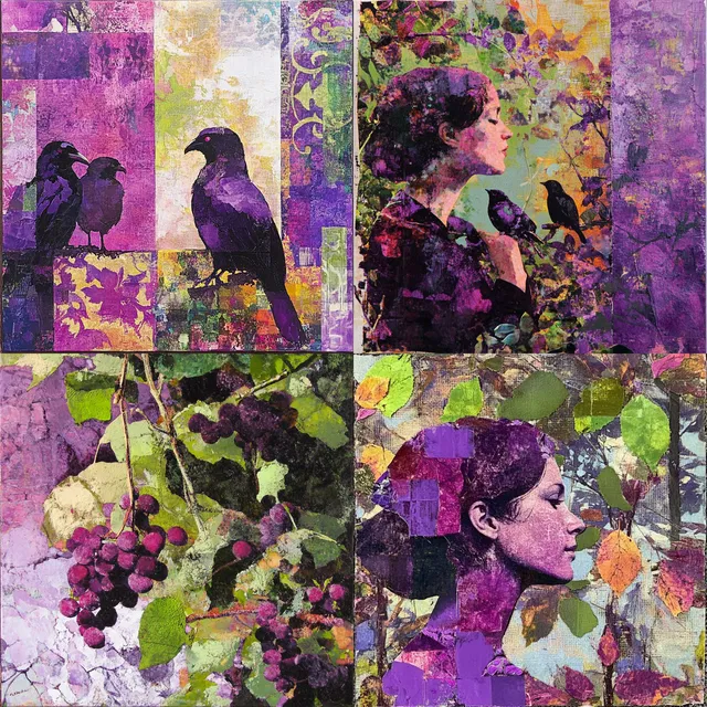 В этом стиле преобладают яркие фиолетовые тона и насыщенные растительные мотивы, которые создают сказочную, текстурированную визуальную картину. Образцы отличаются сложной многослойной структурой и детальной проработкой, при этом особое внимание уделяется цветочным и органическим элементам.