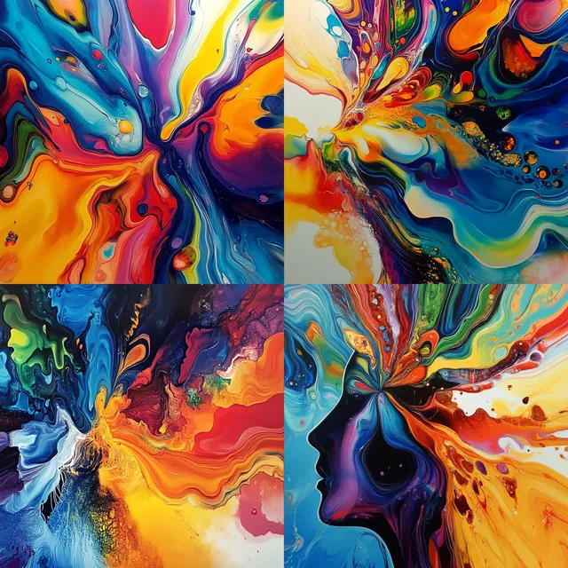 Этот стиль отличается взрывной яркостью и динамичностью. Его характерные черты — это закрученные формы и насыщенная палитра. Плавные линии и органические текстуры создают ощущение движения и энергии, а смелые контрасты и выразительная манера письма придают игривость и жизнерадостность.