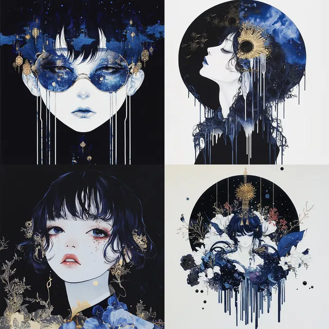 Стиль отличается гармоничным сочетанием сложных узоров и неземных композиций, что делает его идеальным для редакционных иллюстраций, модного дизайна и брендинга. Однако склонность к фантастике может ограничить его применение в более реалистичных контекстах, где требуется фотореализм.