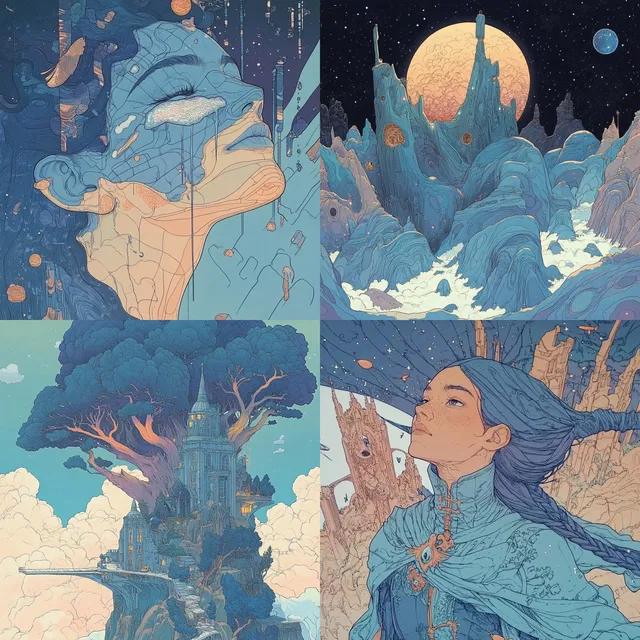 Этот стиль прекрасно подходит для фэнтези и концептуального искусства, предлагая уникальный визуальный язык, одновременно поэтичный и фантазийный. Однако склонность к абстракции может ограничивать его применение в более реалистичных или технических контекстах.