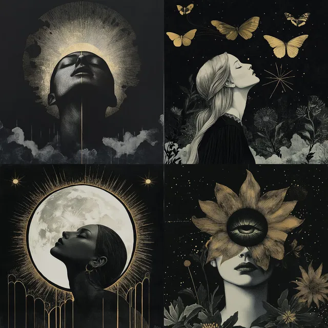 Этот стиль идеально подходит для редакционного дизайна, обложек книг и модной иллюстрации, очаровывая своей небесной и мистической привлекательностью.