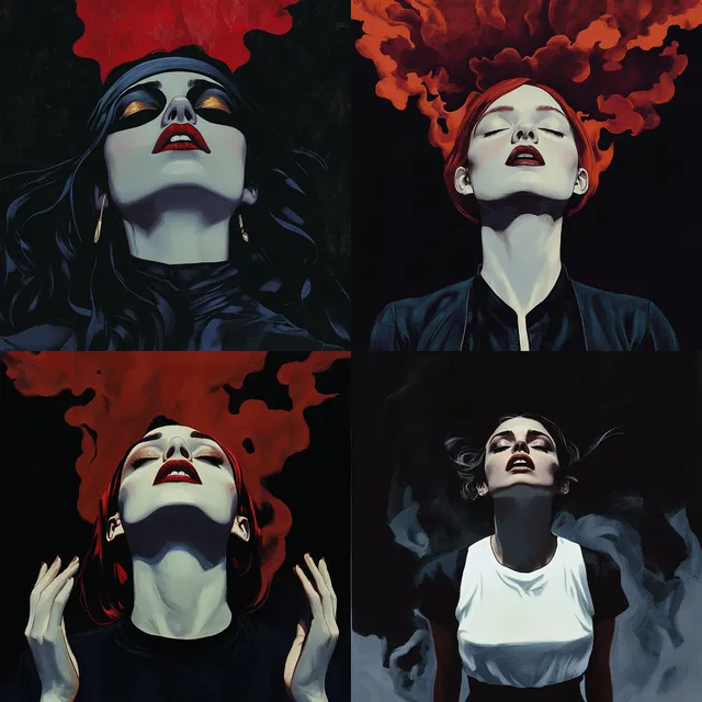 Этот стиль завораживает своим готическим шармом и глубиной повествования. Он богат драматическим контрастом света и тени и символическими образами. Использование тёмных тонов, насыщенных красных и глубоких синих оттенков создаёт навязчивую атмосферу, а чёткие контуры и сильные контрасты усиливают эмоциональную напряжённость. Органичные формы и сюрреалистичные текстуры придают изображению сказочное качество, сочетая влияние готики и барокко с современными элементами.