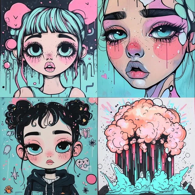 Этот стиль постоянно обращается к темам молодёжной культуры и поп-арта и отлично подходит для создания весёлых и беззаботных историй. Однако его зависимость от ограниченной цветовой палитры и упрощённых форм может ограничивать универсальность в более сложных или фотореалистичных контекстах.