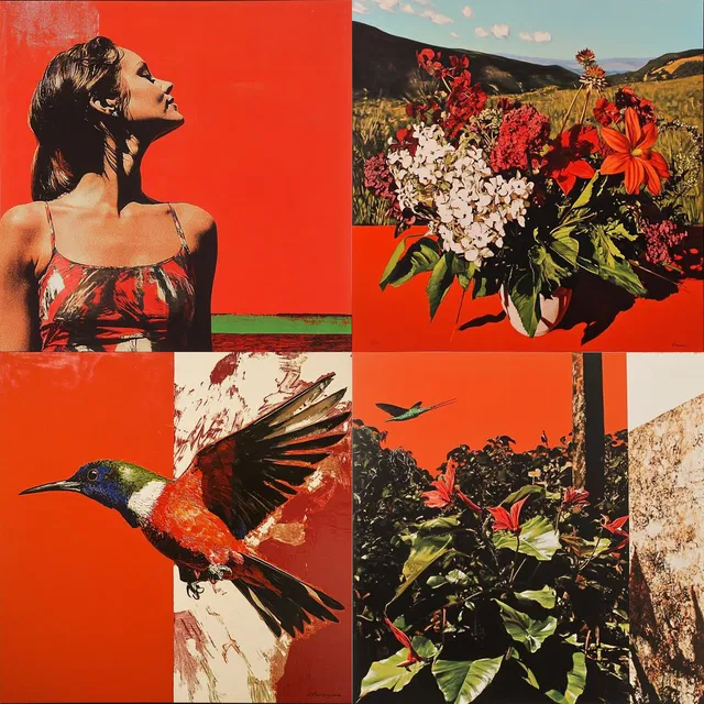 Реализм в ярких красных тонах привлекает внимание благодаря смелой хроматической сегментации и высококонтрастным визуальным образам. Создаётся увлекательное взаимодействие между графическим реализмом и фотореалистичной иллюстрацией.