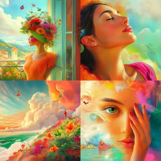 Выражения «Vivid Dreamscape» очаровывают сияющими цветовыми палитрами и сказочными композициями. В этом стиле элементы сюрреализма сочетаются с импрессионистическими техниками.
