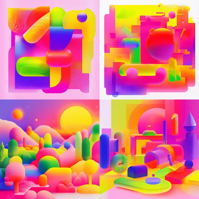 Этот стиль — яркое исследование неонового искусства. Он завораживает своей сияющей палитрой и сюрреалистичными композициями. Использование светящихся оттенков создаёт атмосферу мечты, сочетая футуризм с игривой и причудливой эстетикой.