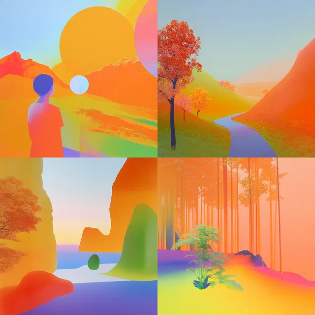 Этот стиль — яркое исследование цвета и света. Он очаровывает своей неземной и сказочной атмосферой. Его визуальный язык определяют градиентные переходы и хроматическая гармония, которые создают сюрреалистичные пространства, вызывающие ощущение чего-то потустороннего. Полупрозрачные конструкции и мягкие контуры придают мистическую ауру как городским, так и природным пейзажам.