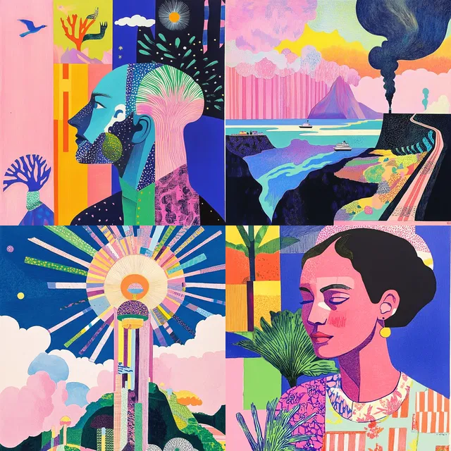 Стиль превосходно подходит для создания живых, многослойных текстур и динамичных композиций, что делает его идеальным для редакционного дизайна, модной иллюстрации и брендинга. Однако из-за своей абстрактности он может быть не так эффективен в фотореалистичных или высокодетализированных технических приложениях.