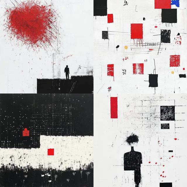 Этот стиль отличается преобладанием геометрической абстракции и монохромной палитры. Он создаёт чёткие минималистичные композиции с угловатыми формами и лаконичными деталями. Чёрно-белую схему разбавляют красные акценты, которые придают композиции насыщенность и фокус.