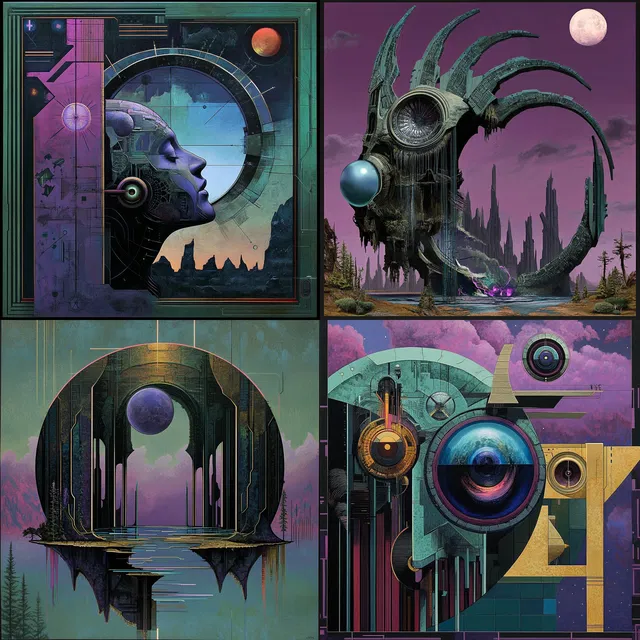 Замысловатые дизайны и структурная сложность очевидны в различных приложениях — от моды до редакционных иллюстраций. Они создают богатое полотно научно-фантастических и космических влияний.