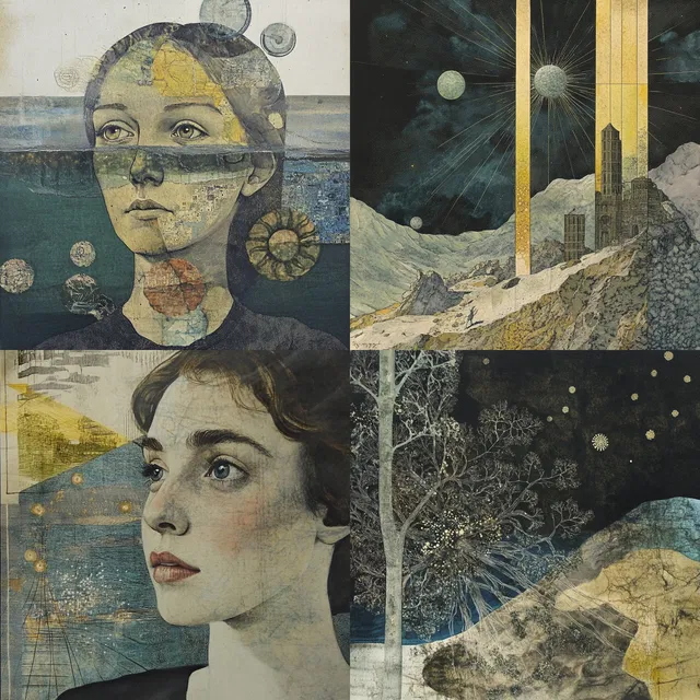 Эфирный и космический стиль очаровывает своими замысловатыми текстурами и небесными мотивами. Многослойные детали и приглушённая цветовая палитра создают атмосферу мечты, напоминая символизм и модерн.