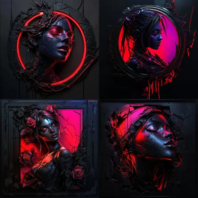 В этом стиле преобладают неоново-розовый и ярко-красный цвета. Он воплощает эстетику футуризма и киберпанка, отличающуюся выразительными контрастами и замысловатыми деталями.