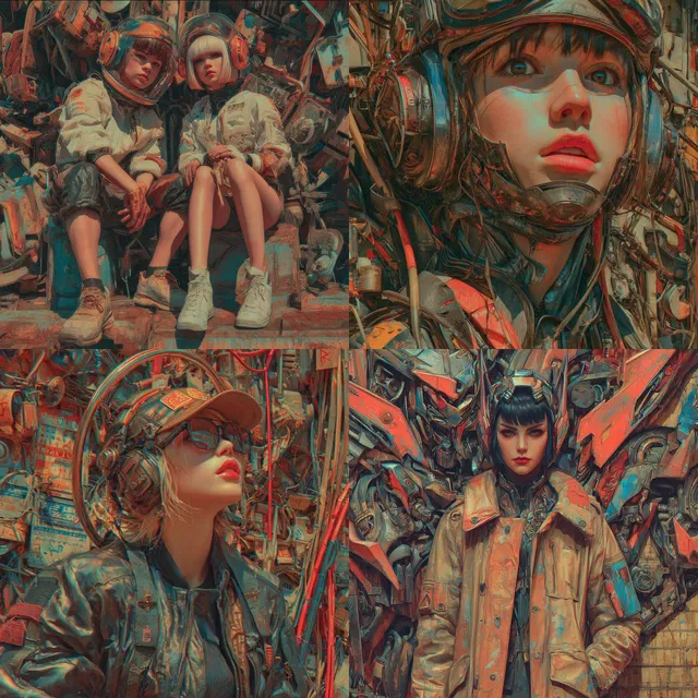 В этом стиле преобладают механические детали и индустриальные элементы, которые создают кибернетическую эстетику, сочетающую в себе футуристические и антиутопические мотивы. Стиль отличается техноорганическим слиянием, что проявляется в сложных композициях и атмосфере киберпанка. Механические мотивы и индустриальная палитра очень выразительны, но в фотореалистичных контекстах стилю может не хватать утончённости.