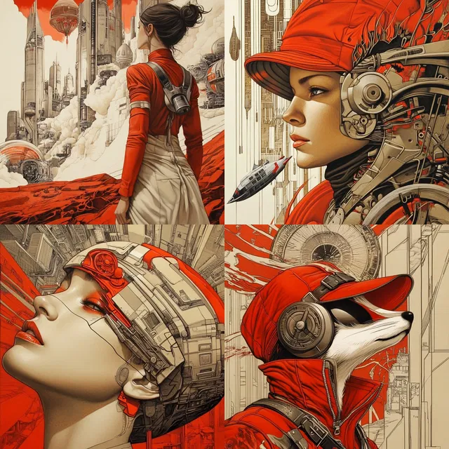 В этом стиле преобладает яркая красно-бежевая палитра. Он искусно сочетает механические детали с футуристической эстетикой.