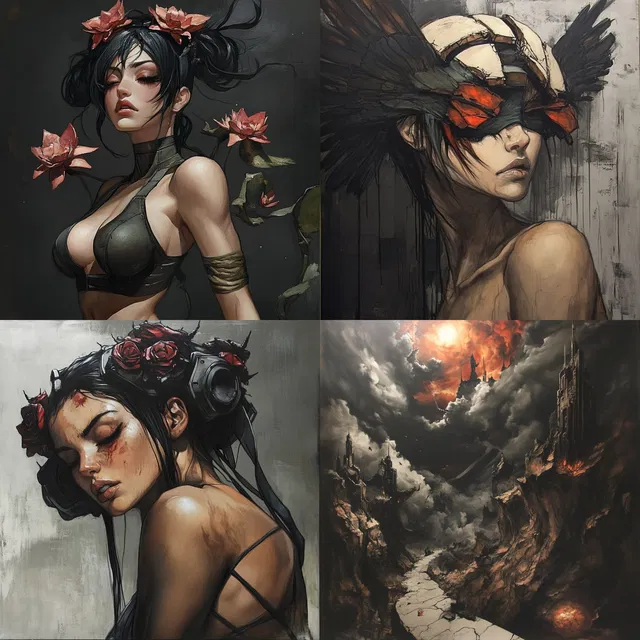 Этот стиль — завораживающее сочетание сюрреализма и тёмного фэнтези. Он прекрасно создаёт атмосферные, потусторонние визуальные образы. Замысловатые детали и фактурные поверхности вызывают ощущение тайны и глубины, а тёмная, меланхоличная палитра усиливает мрачное, загадочное настроение.