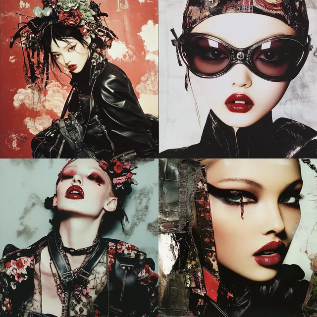 Этот стиль поражает своей сюрреалистичностью и насыщенностью текстур. Он излучает мрачную готическую элегантность с любовью к высокому контрасту и драматичному освещению. Доминируют металлические отблески и отражающие поверхности, создавая загадочную атмосферу, в которой переплетаются футуристические и барочные мотивы. Замысловатые детали и многослойные композиции раскрывают сложную повествовательную структуру, что делает стиль идеальным для модных редакционных статей, концепт-арта и визуального повествования. Однако его склонность к абстракции и нерепрезентативным формам может ограничить его эффективность в фотореалистичных контекстах, где ясность и точность имеют первостепенное значение.