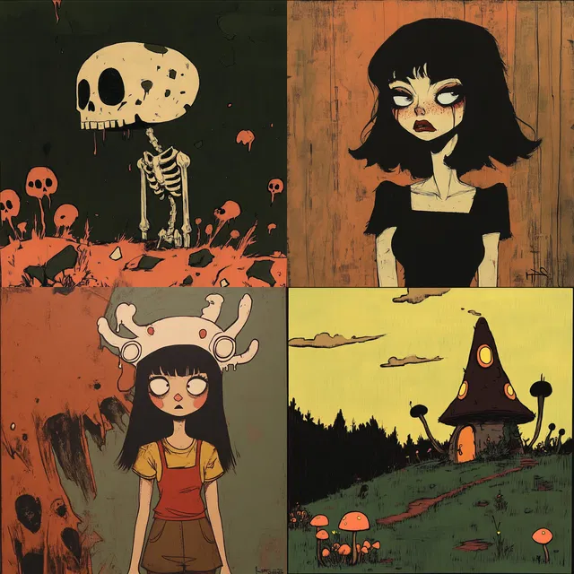 Этот стиль — сюрреалистичный и причудливый. Он процветает за счёт эксцентричности и чёрного юмора, сочетая готические мотивы с мрачной причудливостью. Преобладают землистые, приглушённые тона, которые создают тревожную, но захватывающую атмосферу. Персонажи необычные, с преувеличенными чертами лица и специфическими выражениями. В композициях часто используются сюрреалистические сюжеты и игровые элементы.