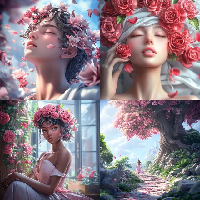 Этот стиль определяют эфемерная красота и изящная элегантность. Он характеризуется романтической атмосферой и чарующим, словно из мечты, шармом. Мягкое освещение и лёгкое размытие создают интимное и проникновенное выражение. Пастельные тона и цветочные мотивы усиливают его чарующую визуальную составляющую. Замысловатые детали и плавные формы этого стиля проявляются в различных областях — от модных редакционных статей до художественных выставок.