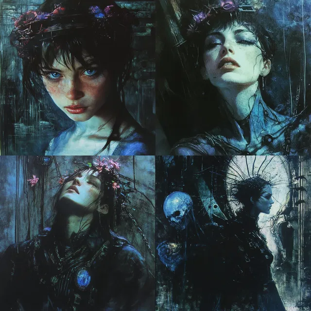 Стиль характеризуется мрачной атмосферой, насыщенной текстурной глубиной и сюрреалистичностью, похожей на сон. Замысловатые детали и сложные многослойные композиции создают завораживающий образ, пробуждая чувство тайны и потусторонности.