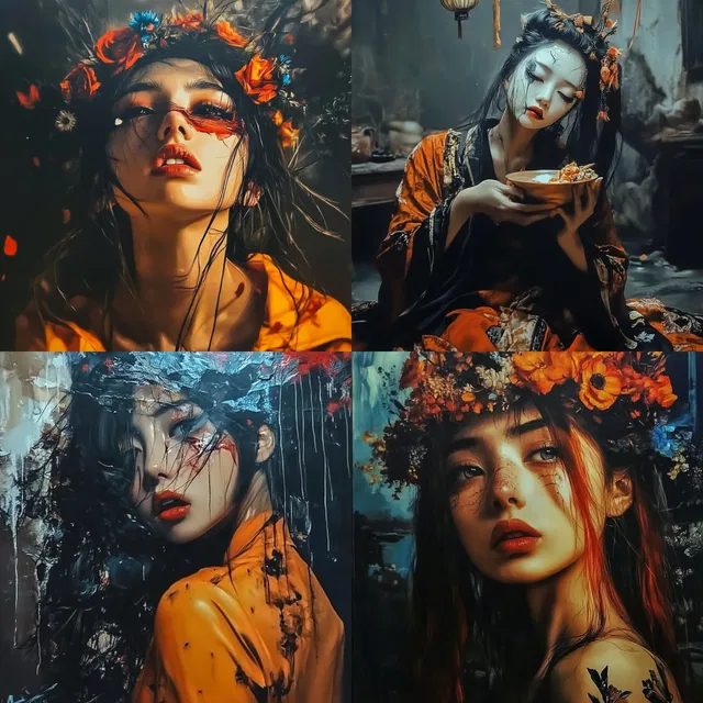 Стиль универсален и подходит для разных тем: от футуристических городских пейзажей до романтизированных портретов. При этом сохраняется настроение таинственности и напряжённости.