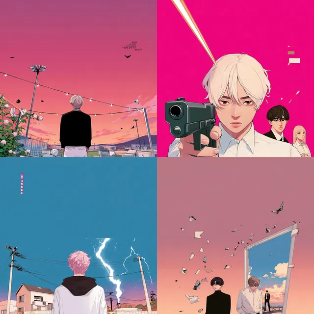 Здесь преобладают ярко-розовые цвета и мягкие градиенты, которые создают сказочную атмосферу в разных темах. Стиль отличается умением сочетать иллюстративные техники с элементами манги, предлагая выразительных персонажей и динамичные композиции. Архитектурные элементы изображены с монолитной точностью, а дизайн персонажей отличается стилизованной индивидуальностью.