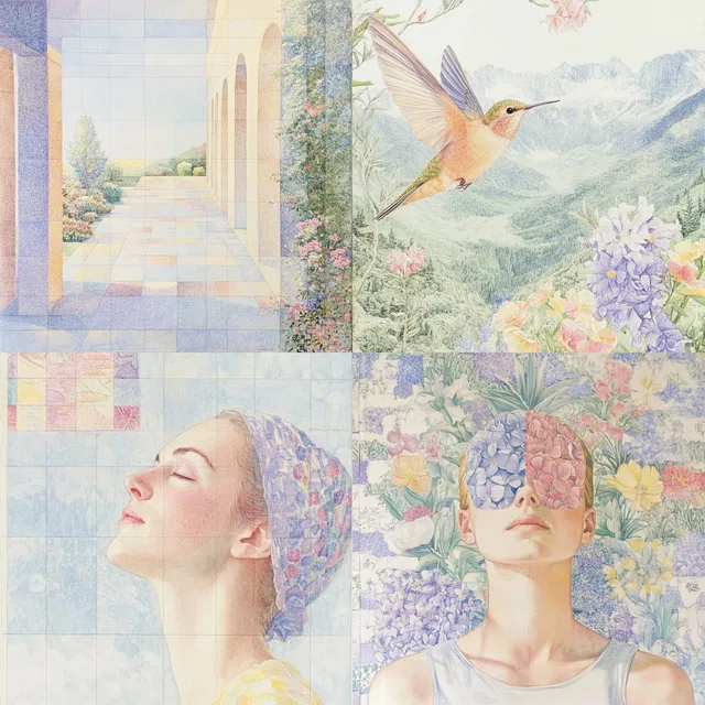 В этом стиле преобладают воздушные композиции, для которых характерны акварельные текстуры и пастельные оттенки, создающие атмосферу мечты. Нежные детали и мягкие градиенты формируют безмятежное настроение, а наполненные светом изображения одновременно успокаивают и завораживают своей сложностью.