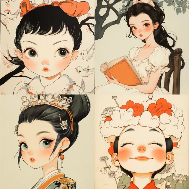 Выразительный и причудливый стиль очаровывает своей тонкой манерой письма кистью и игривым шармом. Он отлично подходит для создания очаровательных персонажей и сказочных фонов, часто черпая вдохновение из эстетики и культурных мотивов Восточной Азии.
