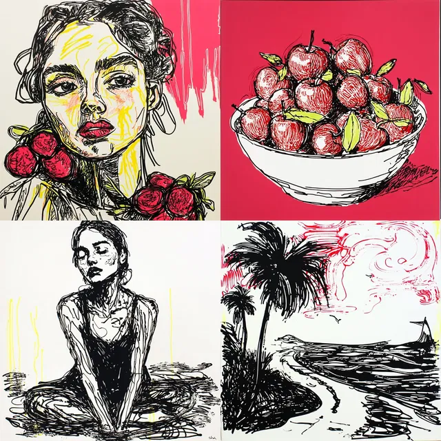 В этом стиле доминируют смелые, выразительные линии, которые создают динамичное взаимодействие ярких цветов и высокого контраста. Использование графических элементов и повторяющихся узоров наполняет энергией и движением каждое произведение.