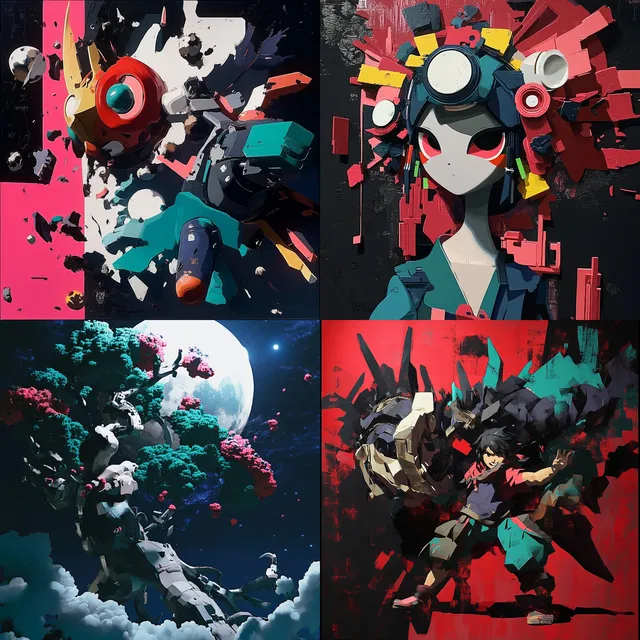 В этом стиле преобладают яркие палитры и чёткие контуры, создающие динамичное взаимодействие цвета и формы. Он отлично передаёт энергию и движение, а фрагментированная геометрия и многослойные структуры добавляют сложности.