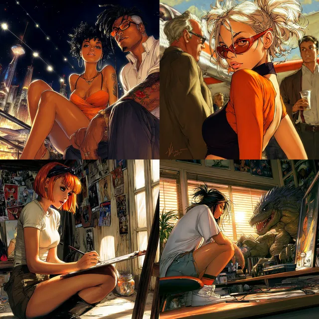 Стиль особенно хорош для иллюстраций, ориентированных на повествование и персонажей, но иногда испытывает трудности с фотореализмом, особенно в спокойных природных сценах.