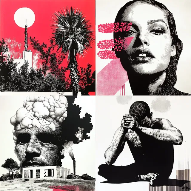 В этом стиле преобладают смелые монохромные визуальные решения с яркими графическими контрастами и насыщенными цветовыми акцентами. Он отлично подходит для создания динамичных композиций с акцентом на чёткость линий и детализацию фактур.