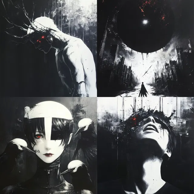 Контрастные изображения с резкими переходами создают драматические визуальные эффекты. Яркие контуры и насыщенные тени усиливают настроение.