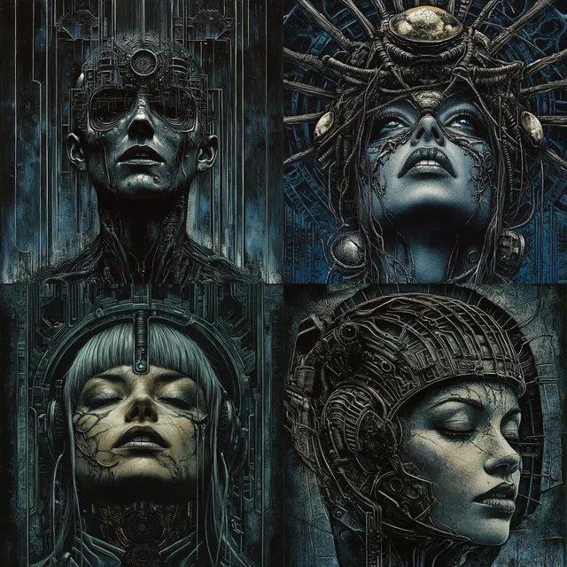 Этот стиль идеально подходит для научно-фантастического и фэнтезийного искусства, предлагая уникальное видение технологической трансформации.