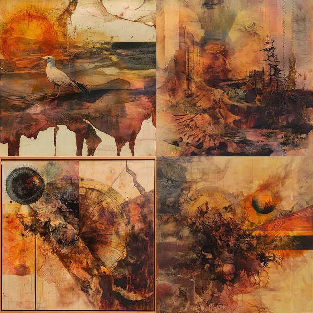 Стиль отличается насыщенной текстурой, землистыми тонами и замысловатыми композициями. В нём сочетаются сюрреалистические и органические элементы, создающие сказочные пейзажи. Тёплые палитры и многослойные поверхности вызывают ощущение глубины и движения. Сложные сочетания природных и архитектурных мотивов формируют уникальное визуальное повествование.