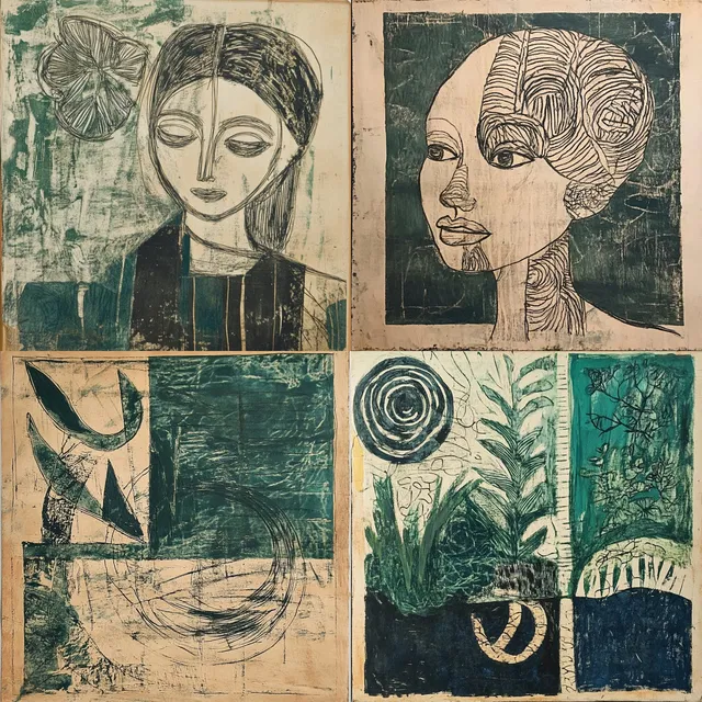 В этом стиле доминируют текстурная насыщенность и линейная направленность, которые создают уникальный визуальный язык, сочетающий абстрактный экспрессионизм с влиянием модернизма. Использование приглушённых зелёных и земляных тонов создаёт сдержанную, но яркую цветовую палитру, усиливающую спокойное и безмятежное настроение стиля.