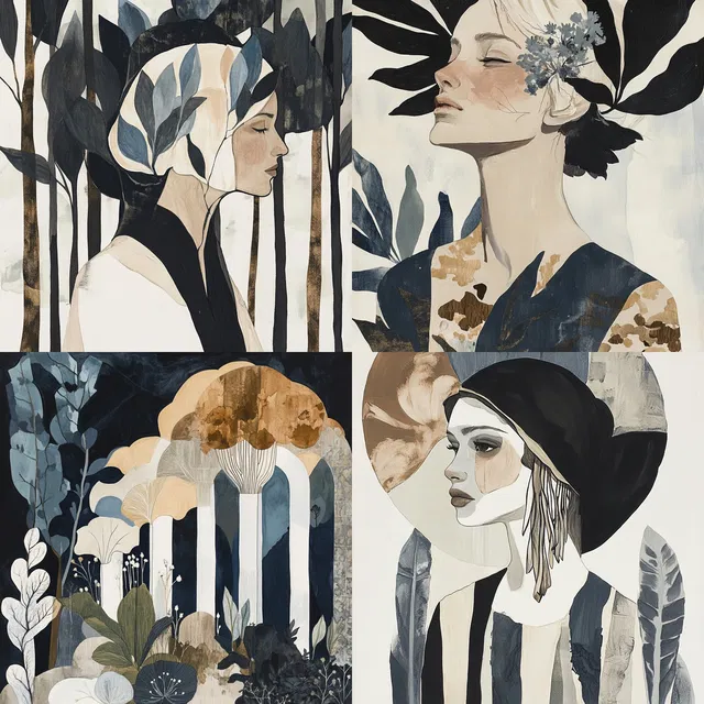 В этом стиле преобладают приглушённые тона и землистые цвета, которые создают спокойную и умиротворяющую атмосферу. Широко используются ботанические мотивы и органические формы, что придаёт композициям естественность и воздушность. Многослойные текстуры и текстурная глубина усиливают визуальную насыщенность, а интеграция элементов, вдохновлённых природой, обеспечивает гармоничную связь с окружающей средой.