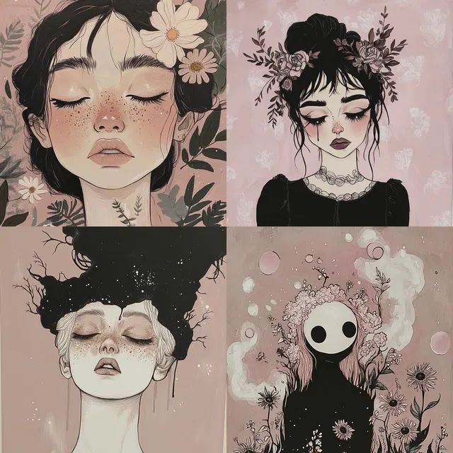 Этот стиль определяют изящные линии и приглушённые пастельные тона, которые вызывают чувство ностальгии и причудливости. Иллюстративность проявляется в детальной проработке и неземных образах, создавая атмосферу мечты. Органичные формы и плавные динамичные элементы искусно вплетены в общую картину, гармонично сочетая природу и технологии.
