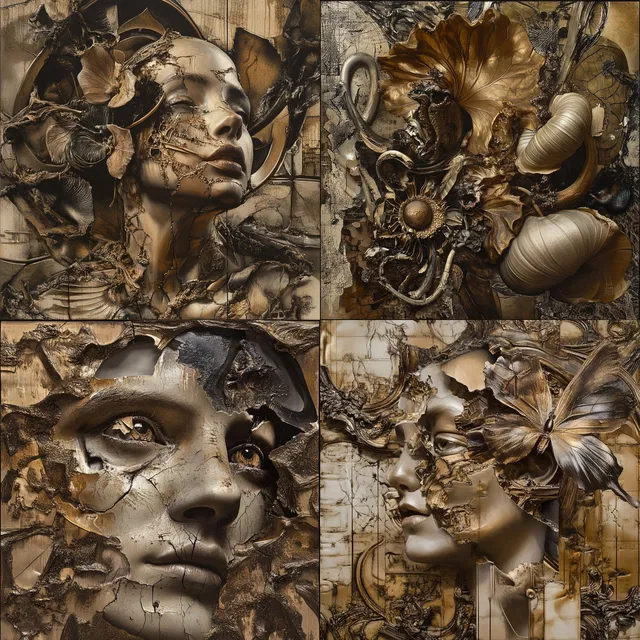 Этот стиль отличается замысловатостью и фактурностью. Он основан на сложных многослойных композициях, которые создают сюрреалистичную и сказочную атмосферу. Преобладают металлические отблески и землистые тона, которые формируют богатую визуальную картину, одновременно органичную и потустороннюю. Скульптурная природа этого стиля придаёт ему трёхмерный вид, что делает его идеальным для концепт-арта и иллюстраций в жанре фэнтези. Однако склонность к вычурным деталям может перегрузить более простые дизайнерские решения, ограничивая универсальность стиля в минималистичных контекстах.